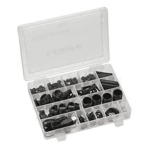 La boîte de rechange Lezyne pour lumières LED comprend des capuchons en caoutchouc pour les lumières LED Hecto Drive, Micro Drive, Strip Drive (avant), Strip Drive (arrière), Strip Drive Pro, KTV Front, KTV Rear et KTV Pro.