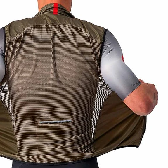 Gilet coupe-vent hautement compressible, prend un minimum de place dans la poche arrière du maillot.